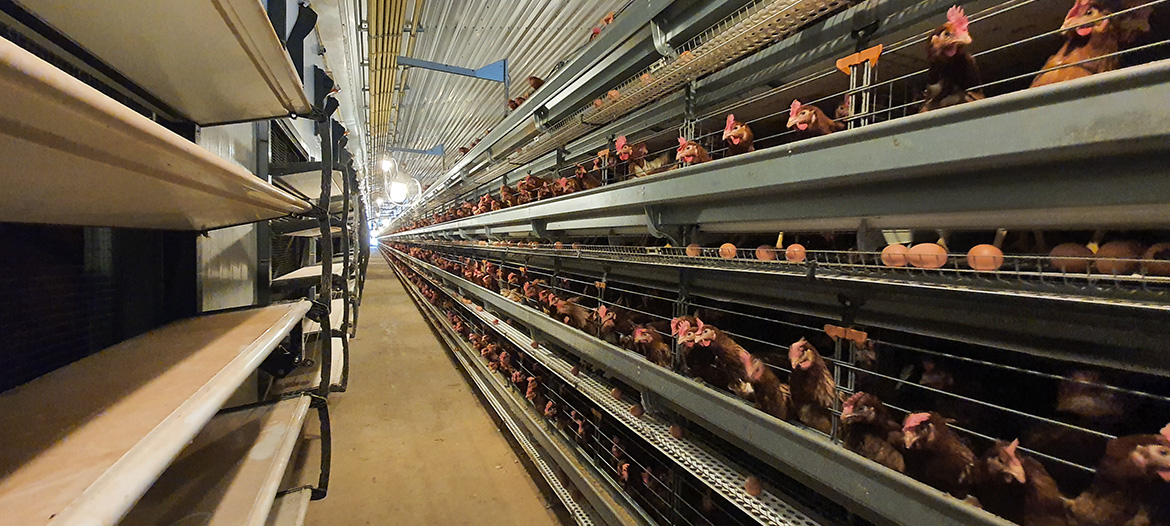 - Hardly any cracked eggs due to short rolling-off distances, and hens are prevented from eating eggs