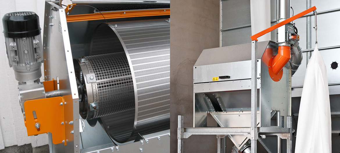 For efficient cleaning of crops before milling, Big Dutchman offers two drum cleaners, drum cleaner T1 and drum cleaner T80/100. They effectively get rid of sand, stones, and bigger foreign fragments from the crop material.