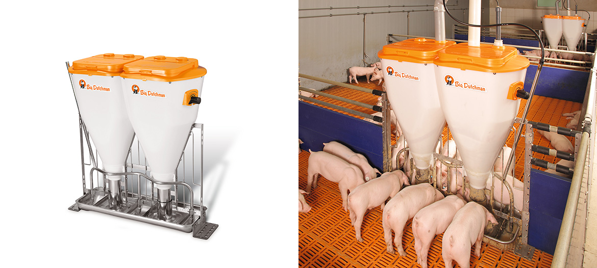 • Free flow of feed which can be easily operated by the pigs owing to the 360° pivoted dosing mechanism