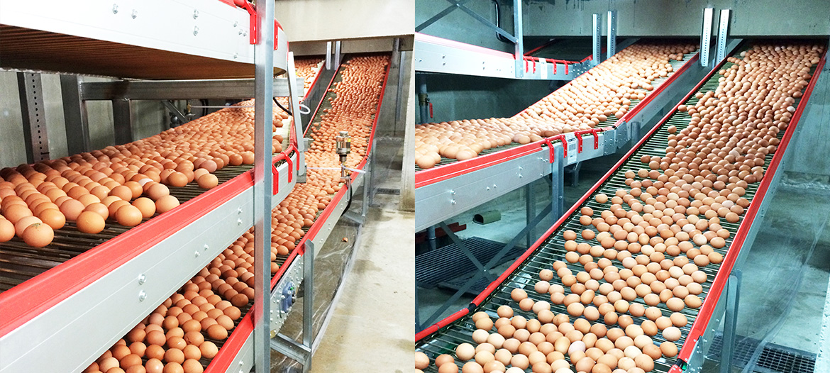 - 크로스바와 컨베이어 체인이 동일한 레벨에 있으므로 달걀이 체인으로 원활하게 이송되도록 보장