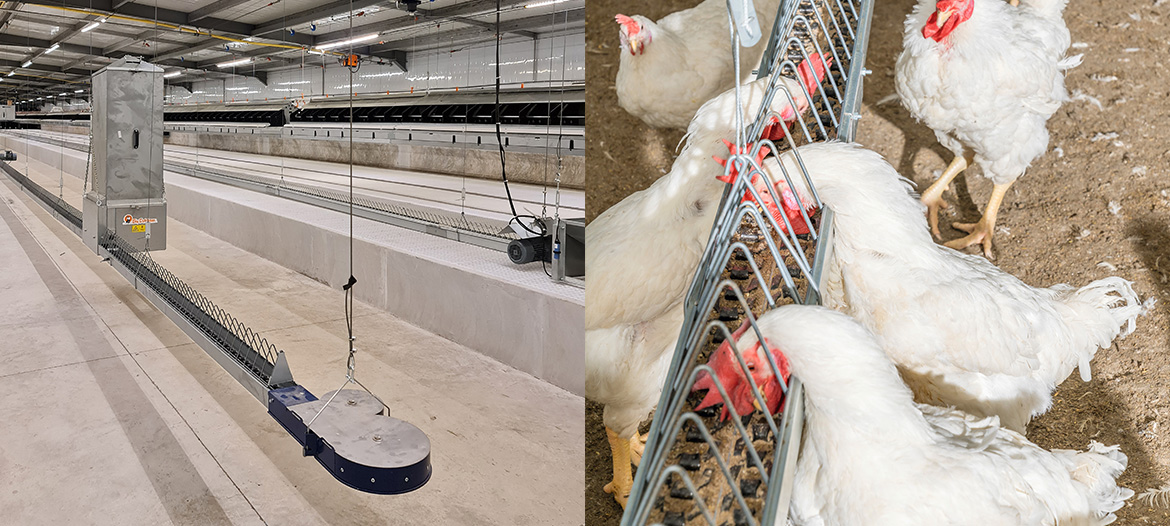 MaleChain은 브로일러 브리더 수컷만을 위해 설계된 체인 먹이 공급 시스템입니다. 수컷은 높은 출산율과 좋은 병아리 품질을 장려하기 위해 특별히 혼합된 사료가 제공되기 때문에 따로 먹이를 줍니다.